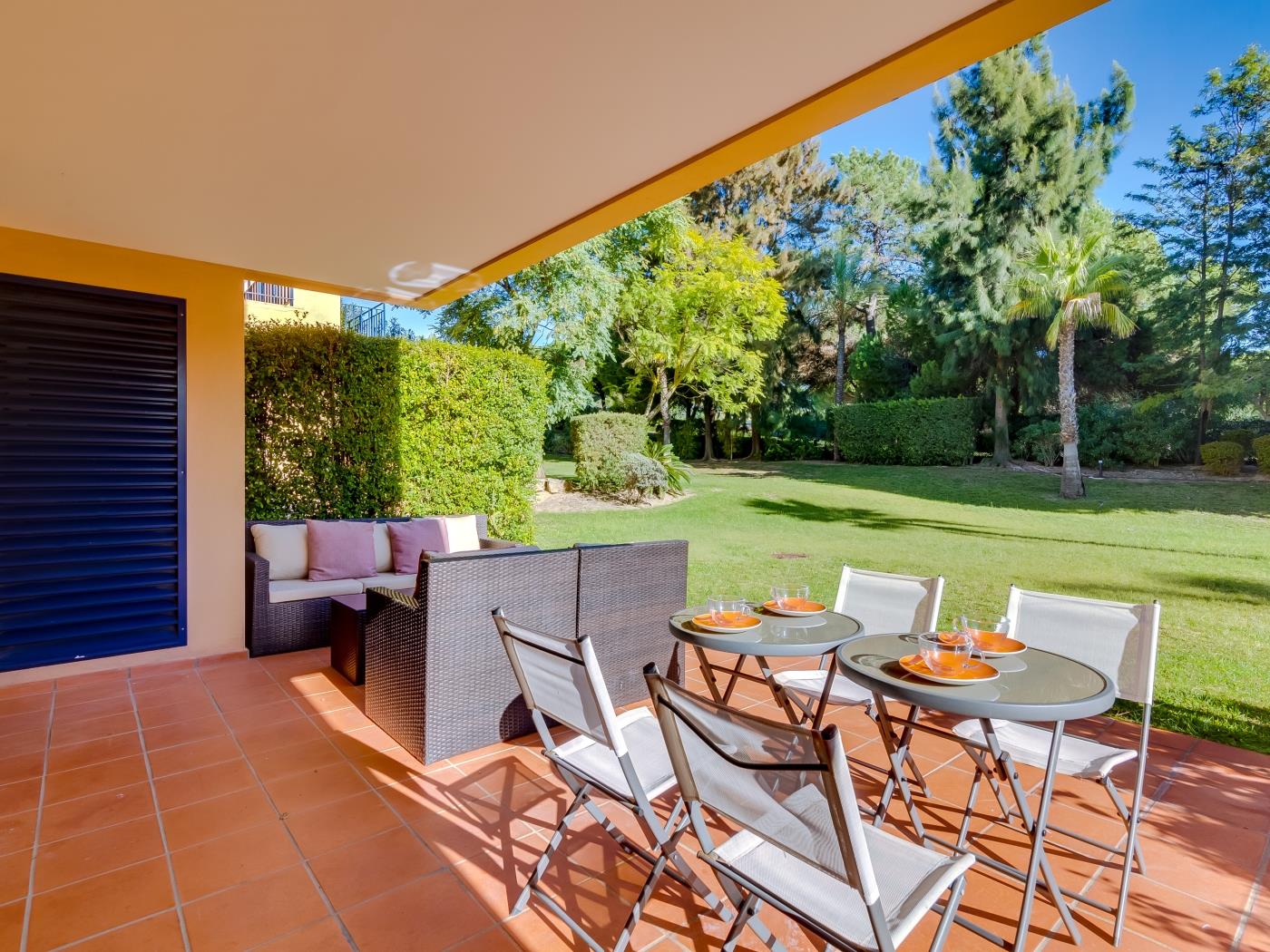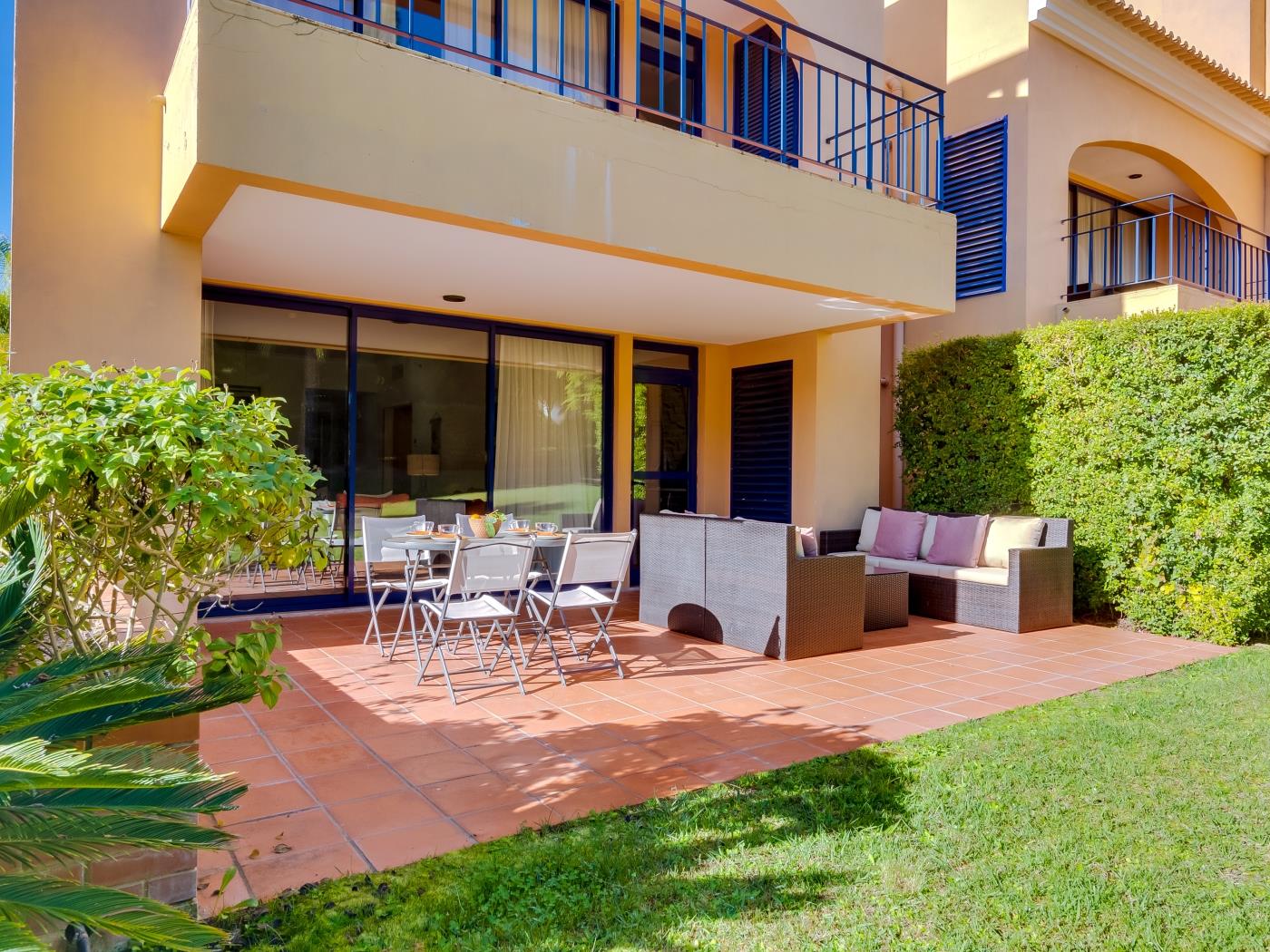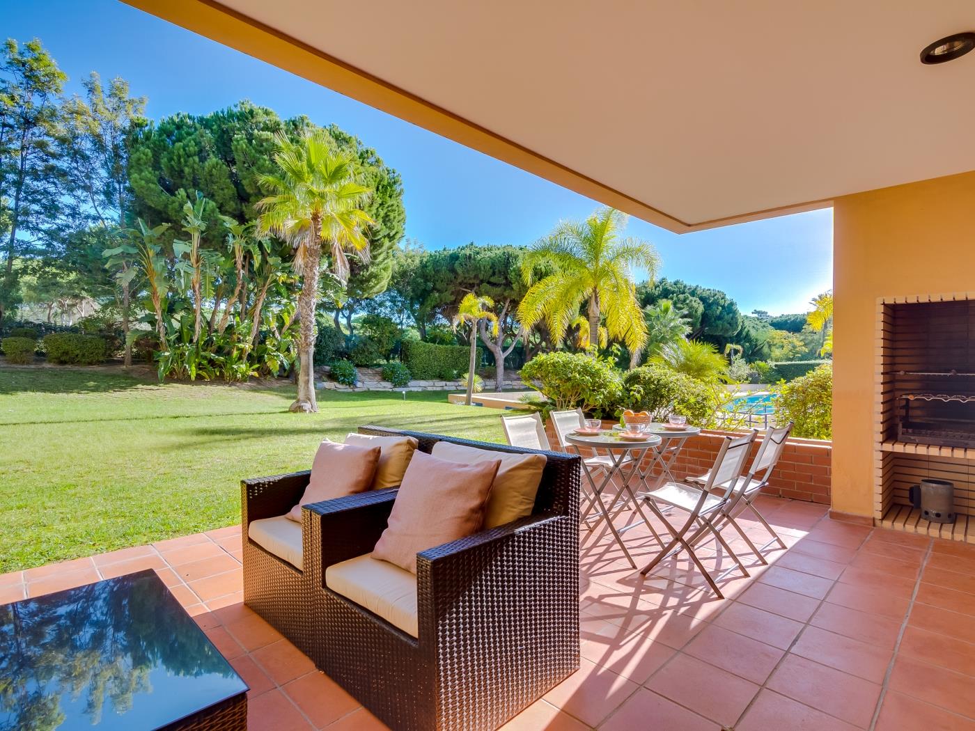 The Vila Sol Golfside Ground Floor is located in the Vila Sol F5 condominium, which offers a pleasant lawn area and an outdoor pool. It is about 5 km from Quarteira Beach.