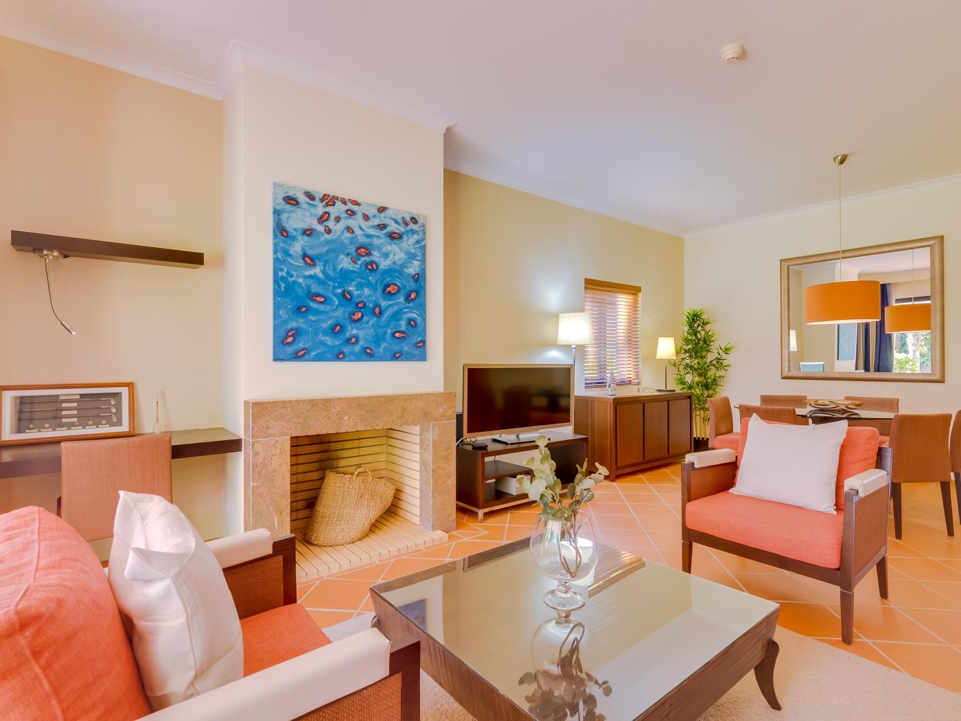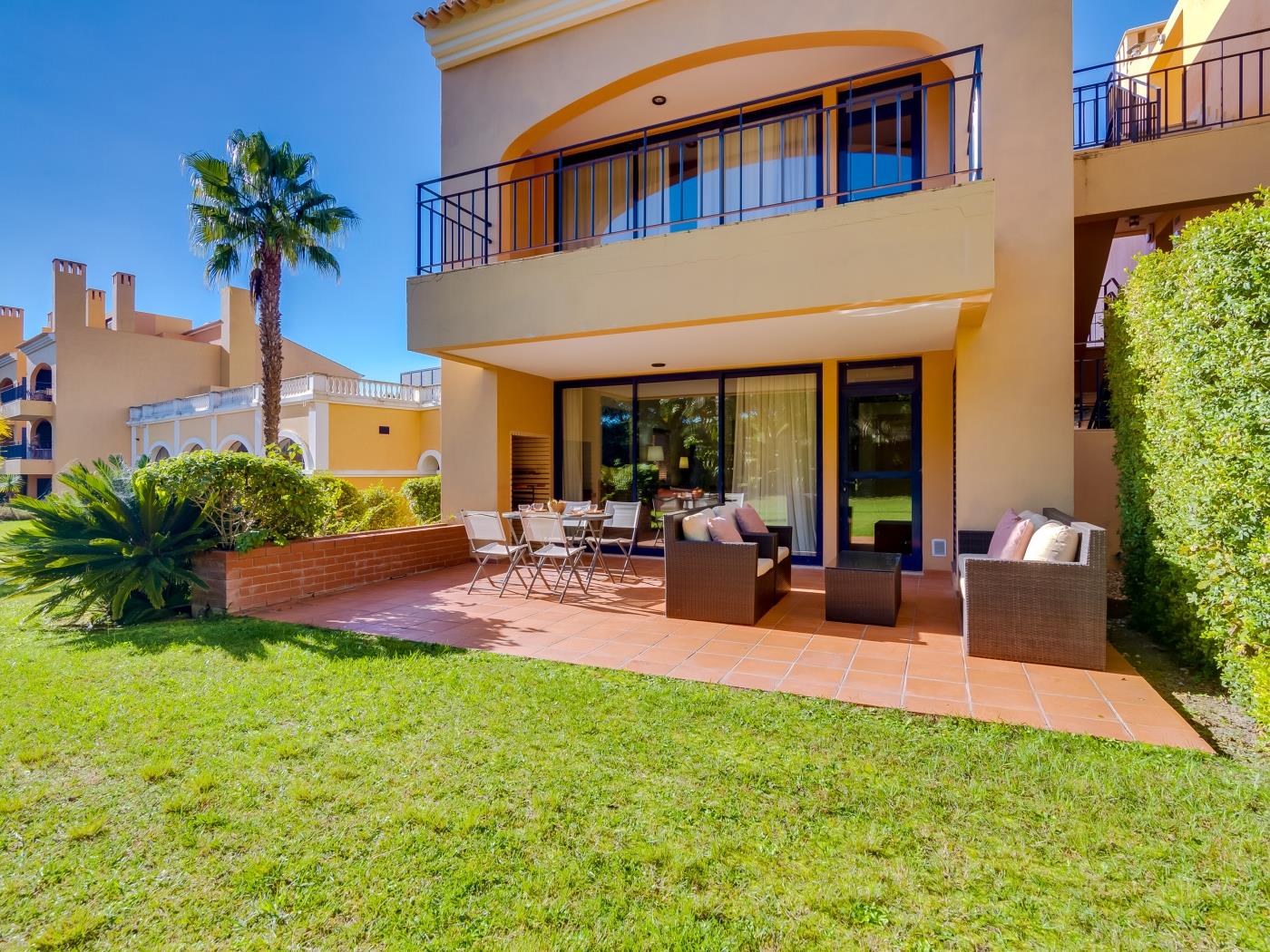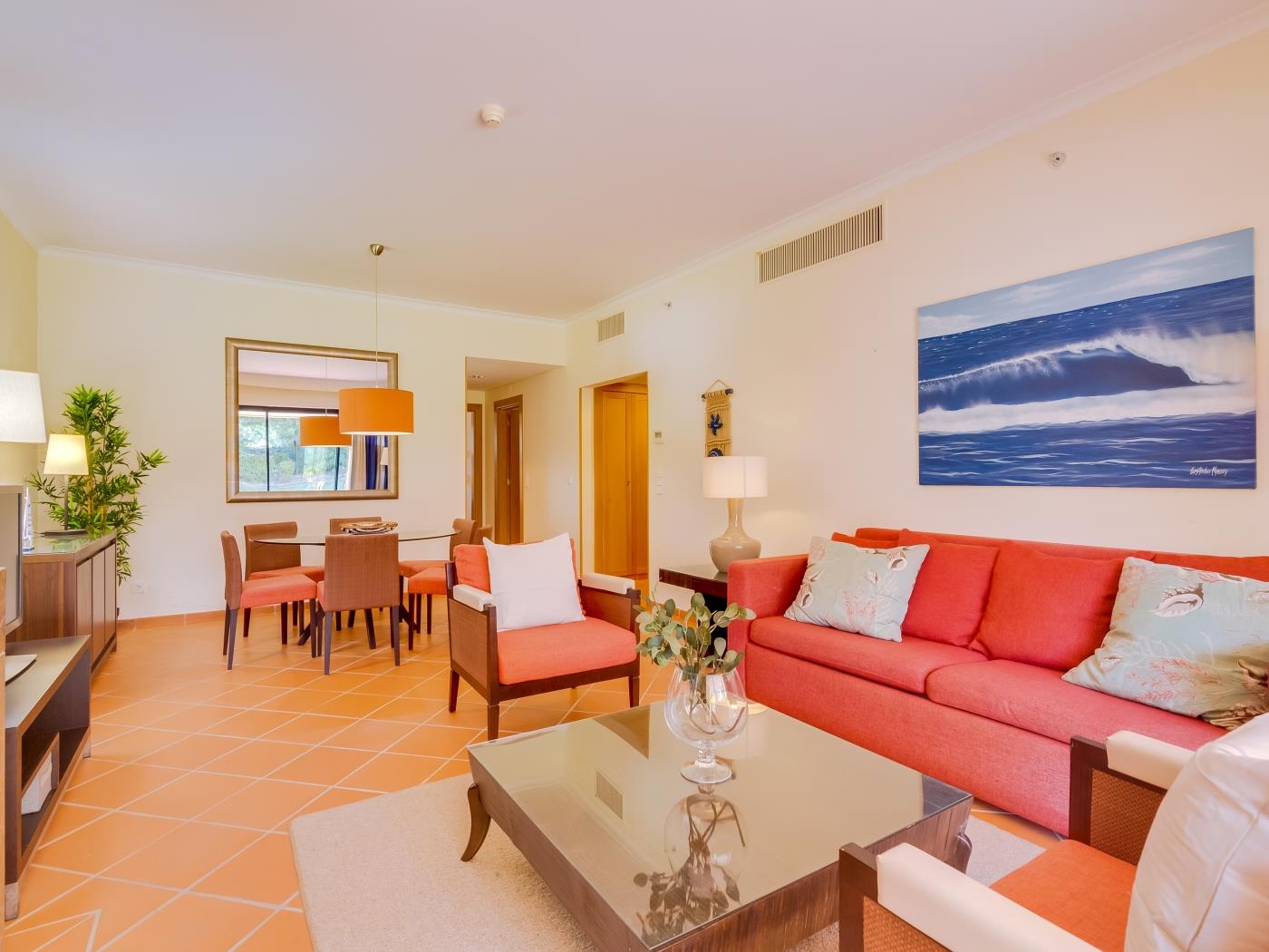 The Vila Sol Golfside Ground Floor is located in the Vila Sol F5 condominium, which offers a pleasant lawn area and an outdoor pool. It is about 5 km from Quarteira Beach.