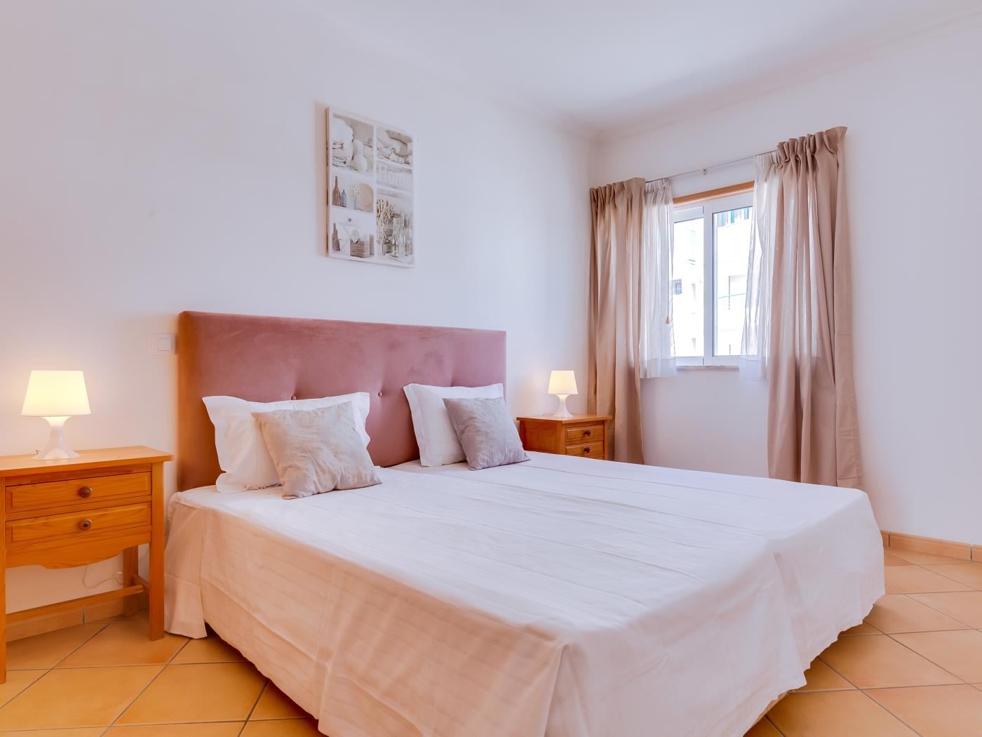 O alojamento tem capacidade para 5 pessoas, com 2 quartos - 1 deles com cama de casal e outro com 2 camas individuais -, 2 casas de banho, sala de estar e jantar e cozinha equipada com os essenciais. O apartamento tem varanda e ar condicionado, tanto na sala como nos quartos. Existem lugares públicos de estacionamento gratuito, nas áreas que rodeiam o edificio.