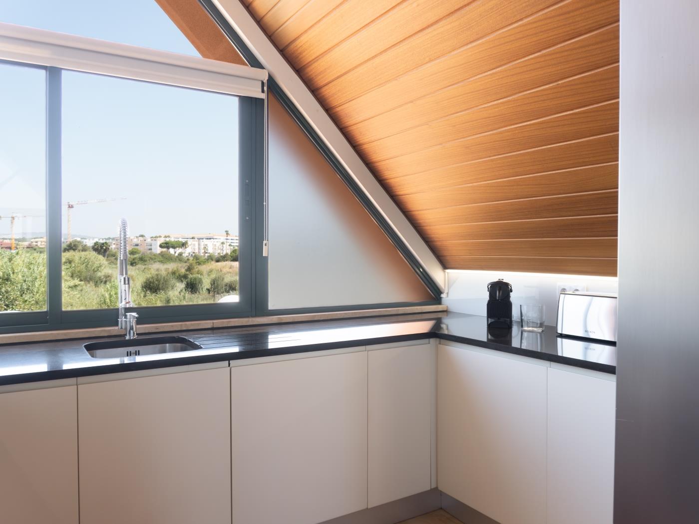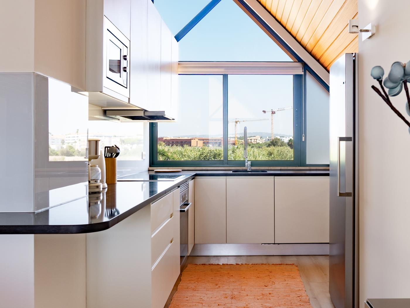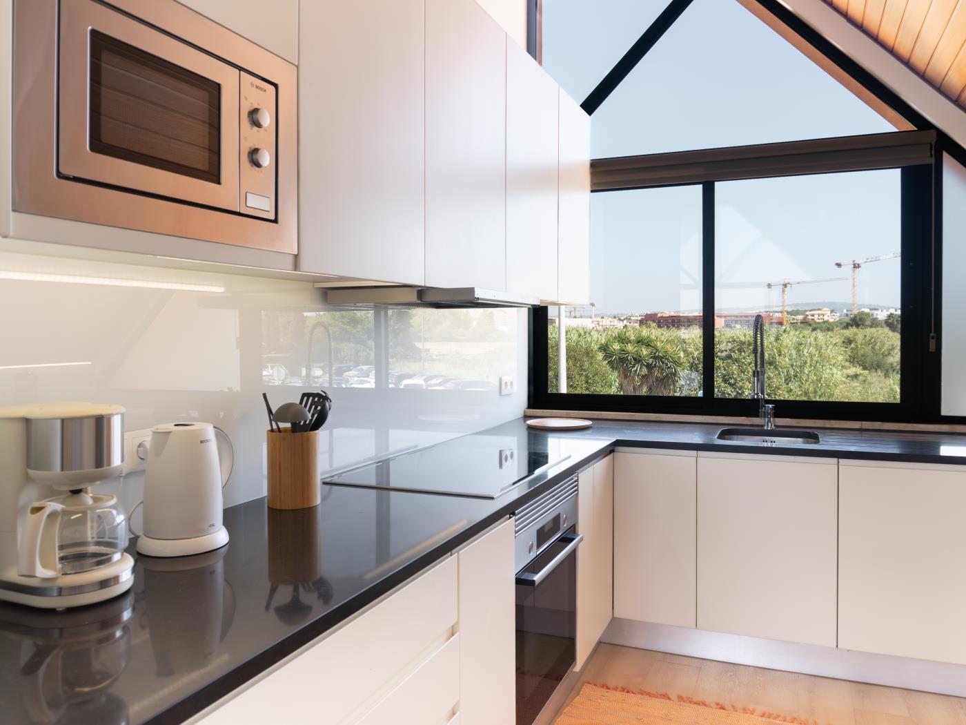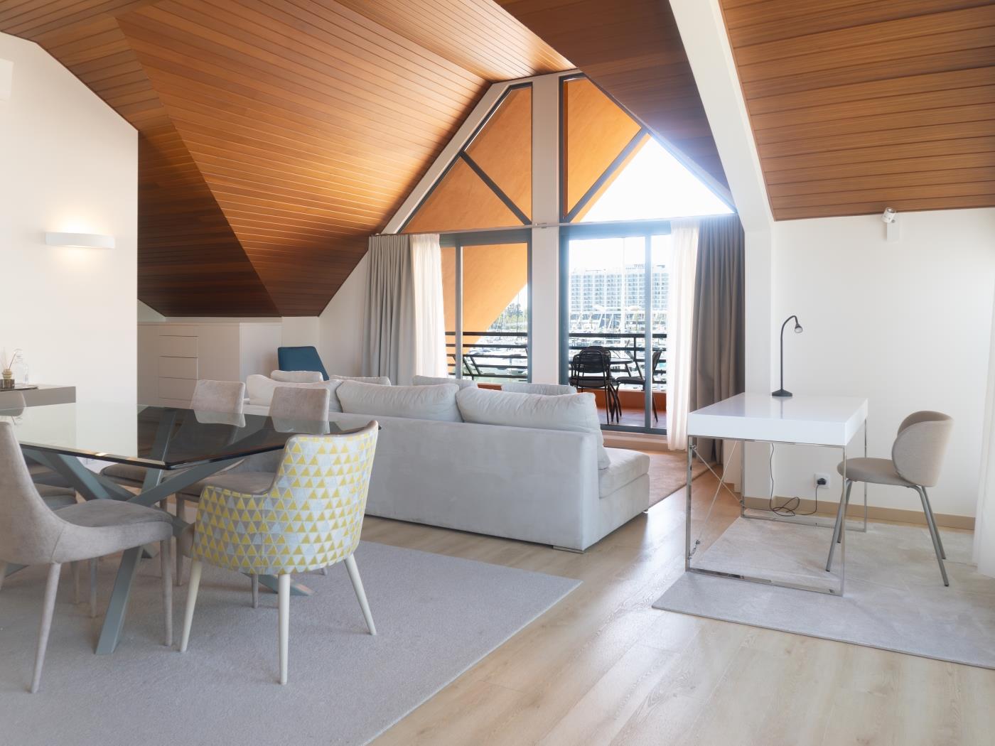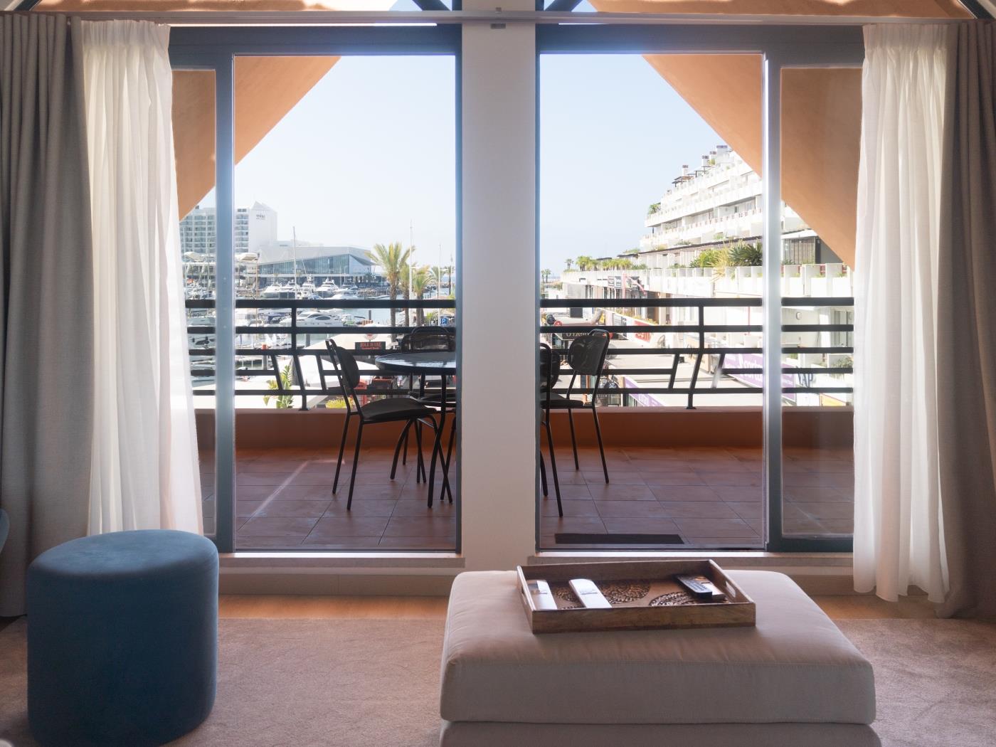 O quarto dispõe de cama de casal e casa de banho privativa com chuveiro. No quarto é possível colocar uma cama extra para alojar uma criança. A sala, com sofá e zona de refeições, dá acesso a uma varanda com vista deslumbrante para a marina. Há ainda uma segunda casa de banho com chuveiro e uma cozinha totalmente equipada para proporcionar todo o conforto durante a estadia.