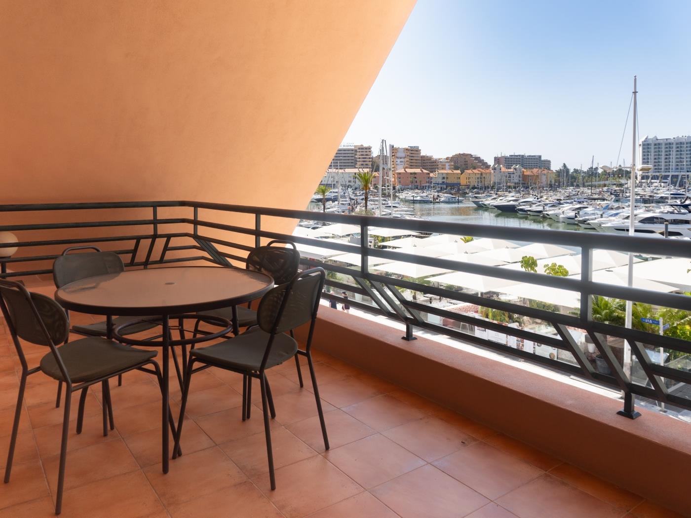 Este elegante apartamento, ideal para 2 adultos e 1 criança, está localizado diretamente na prestigiada Marina de Vilamoura. Não serão aceites reservas para 3 adultos.