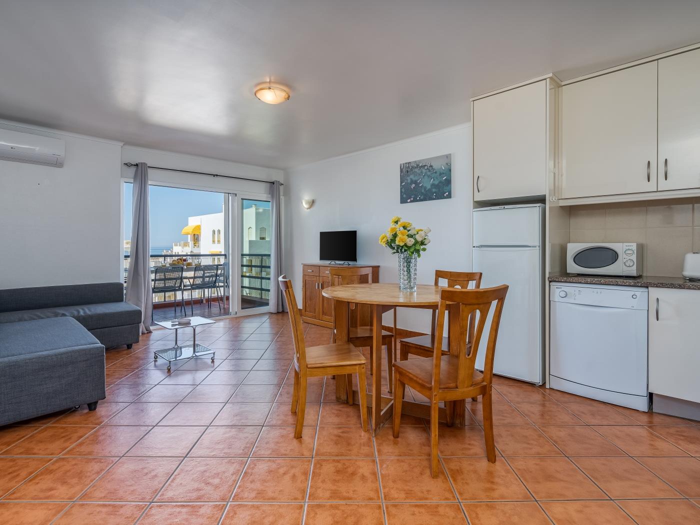 Apartamento T1, localizado no centro de Quarteira, a apenas 200 metros da praia, ideal para uma estadia prática e confortável.